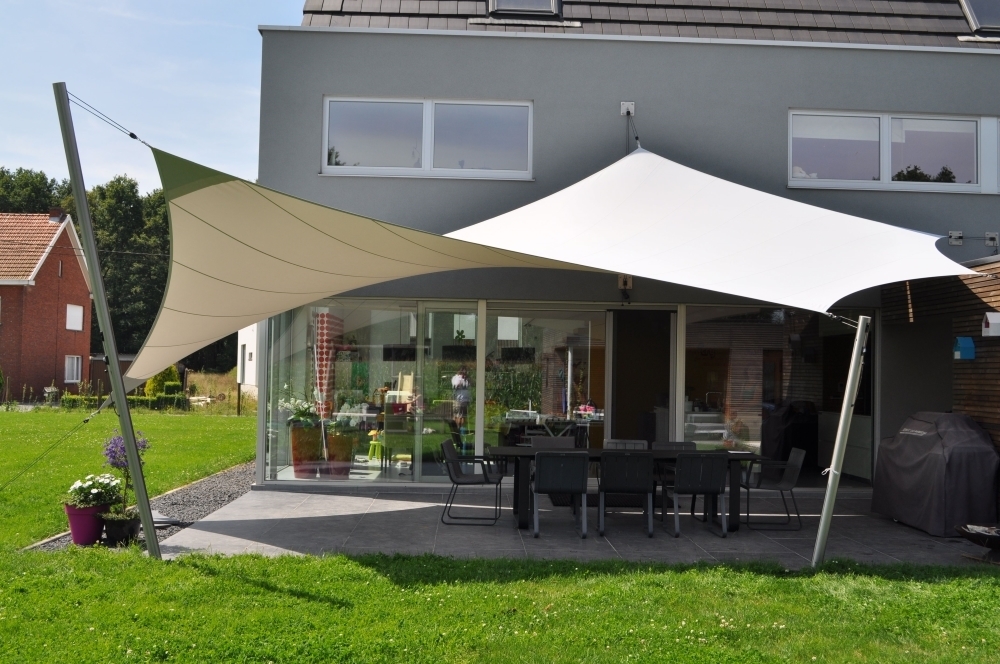 Парусные маркизы позволяют затенять большую площадь различной формы: треугольной, ромбовидной и др. С помощью паруса можно организовать террасуу дома, затененное пространство у бассейна, создать уютный уголок на балконе.